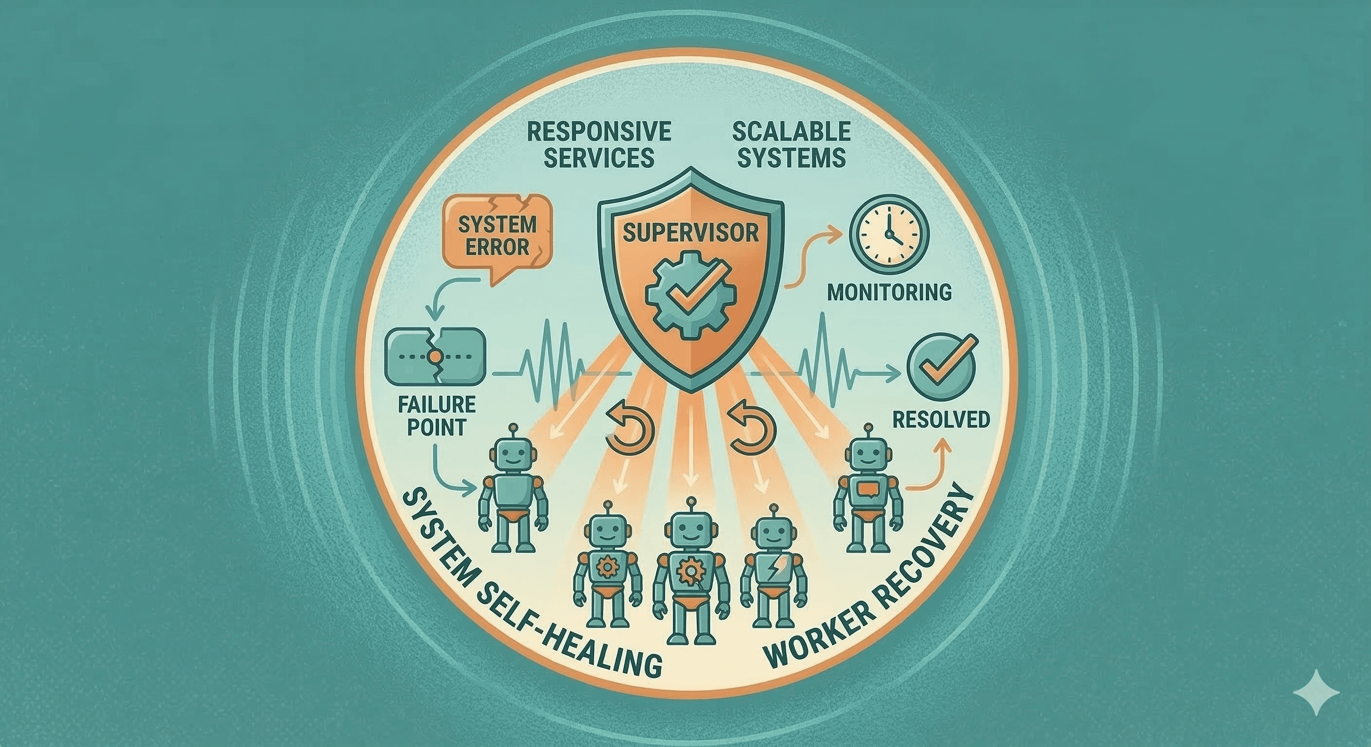 How it works: supervisor agents monitor workers and restart them if they fail.