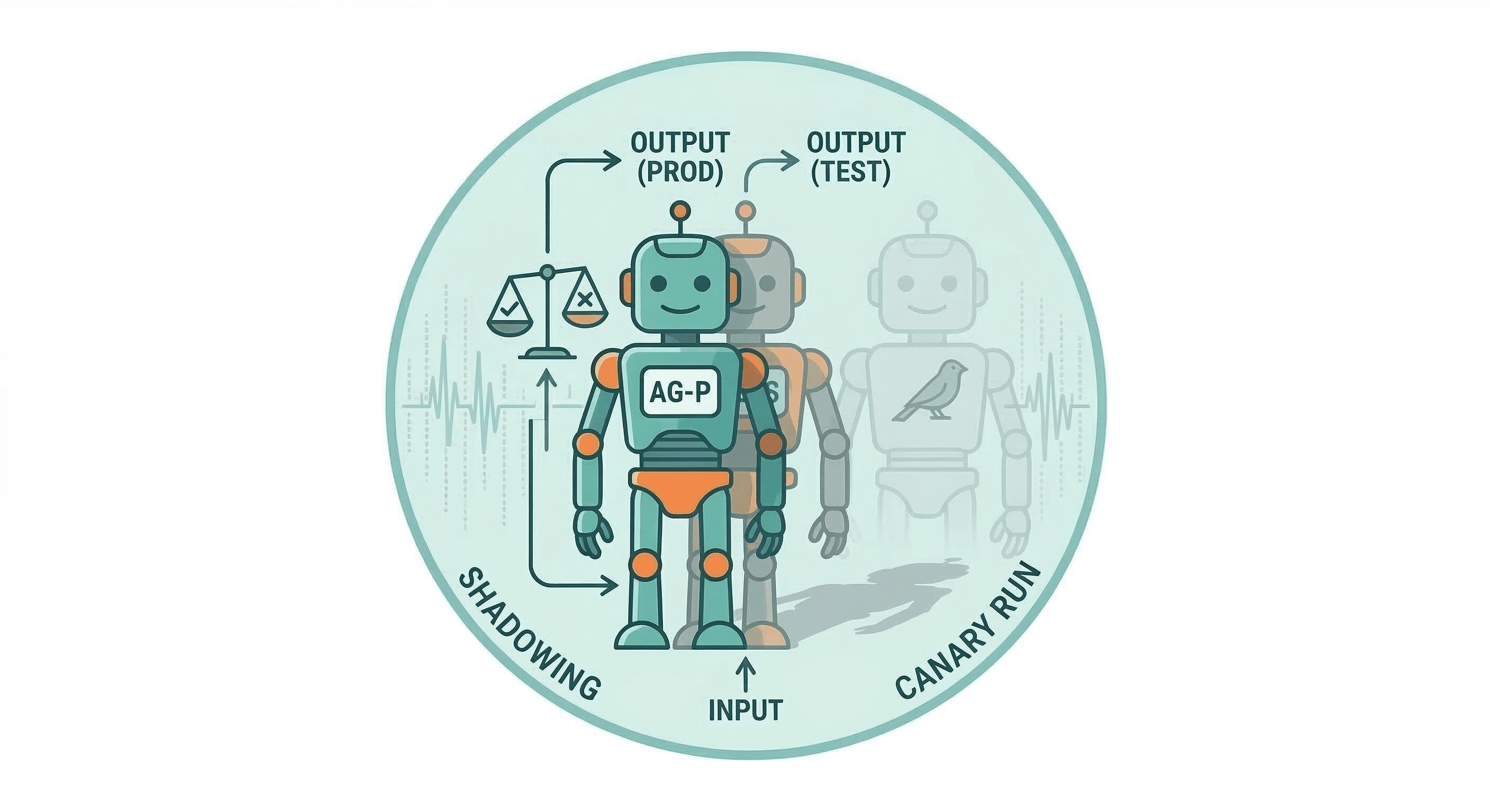 How it works: new agent versions run in “shadow” on production inputs but don’t act.
